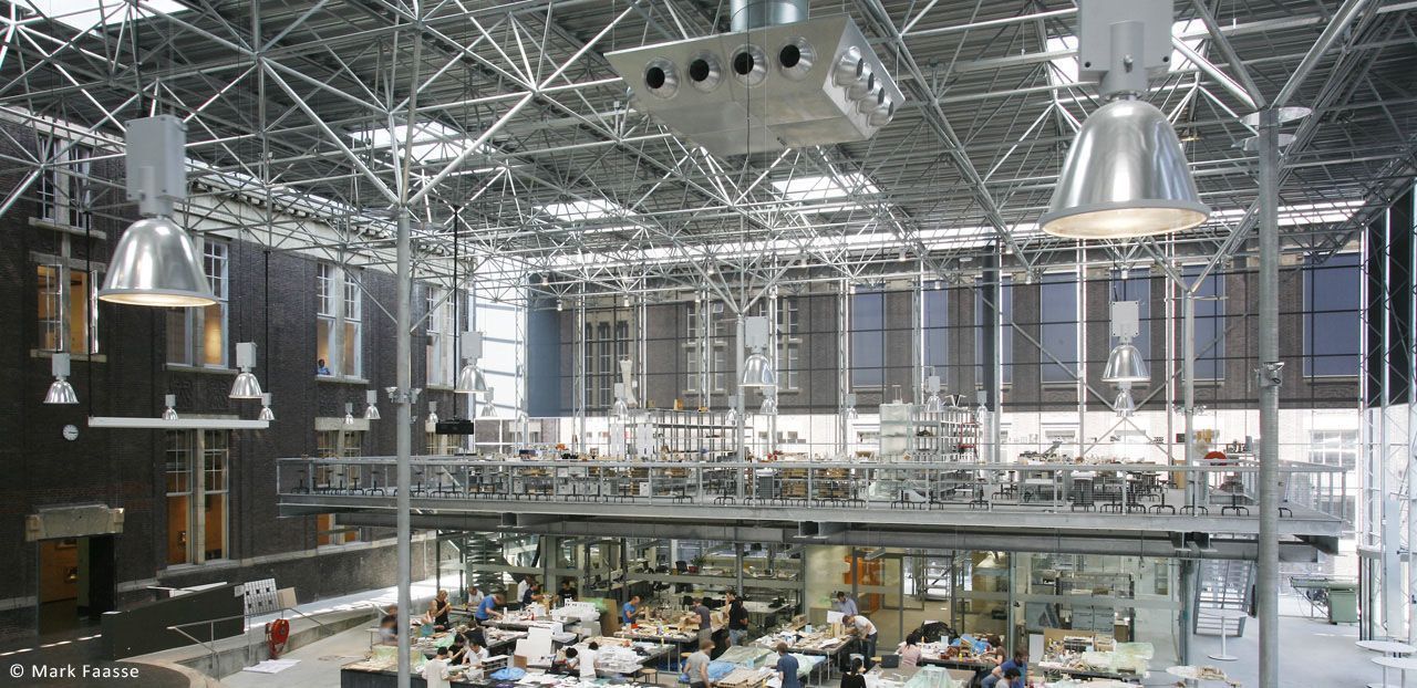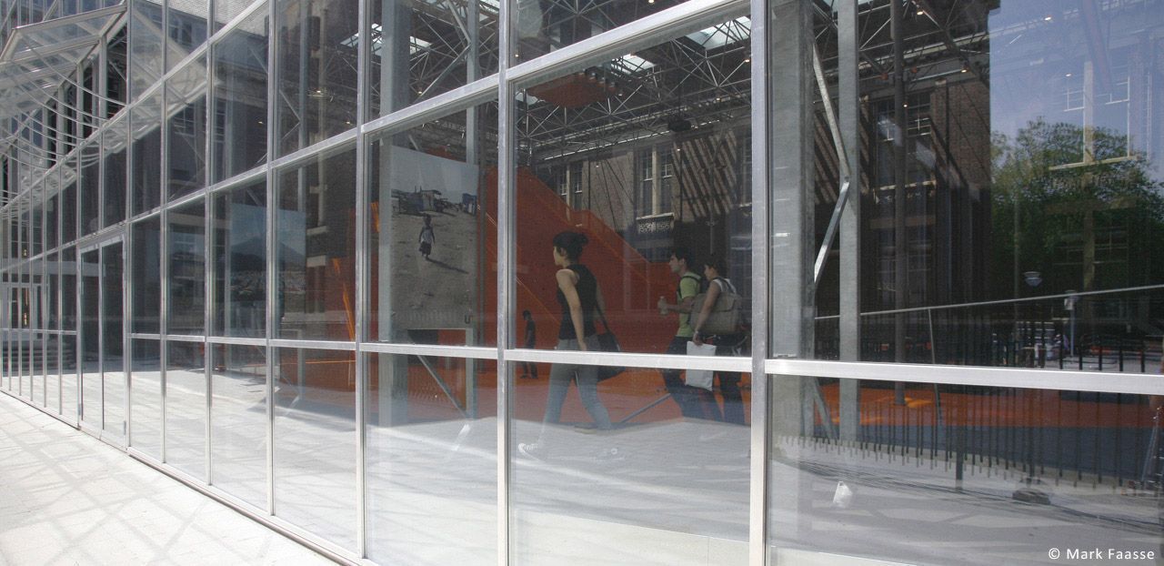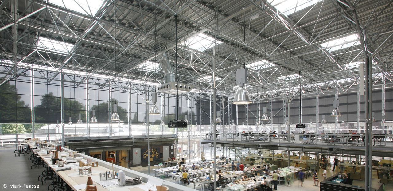The facades are based on standard greenhouse structures but altered to be fitted with DGU’s and structurally strenghtened to reach the required height of the atriums. The spaces are used extensively and and are flexible for model making, lectures, studying and other events.
