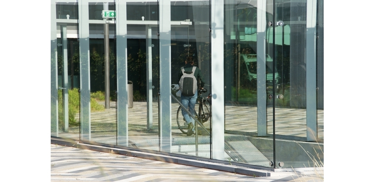 The bicycle entrance is next to the Moxy hotel in Amsterdam. In order to avoid inconvenience to the hotel guests, the work on the concrete could not be done at maximum speed. This allowed Octatube to start later than expected. Fortunately Octatube succeeded in placing the glass entrance quickly and the first cyclists could already be welcomed during the cleaning.