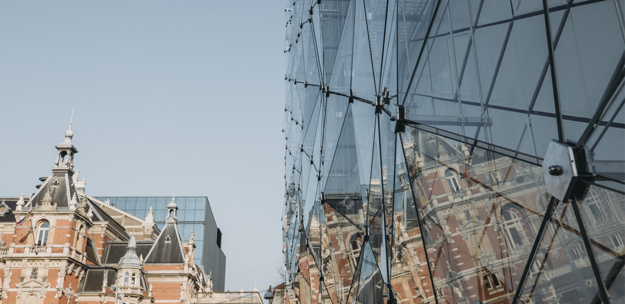 A new iconic building has appeared in the heart of Amsterdam. The transformation of the well-known Heineken Hoek on Leidseplein is finished. The old building has been demolished and a new building of six floors and a basement is build. There is space for restaurants and a four star hotel. Octatube realised the spectacular transparent hanging curtain wall and canopy that gives this new building its unique and striking look.