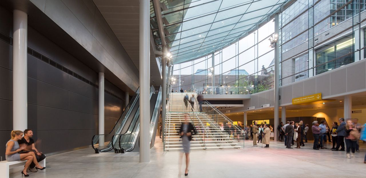 The entrance building of the Van Gogh Museum is the largest structural glass construction in the Netherlands. The beams, façade fins, and panels all contribute to the stability of the building. The project demonstrates – together with projects such as the Kunstmuseum in The Hague – that glass can be used as a primary structural material for breathtaking architectural facades. The project fits in a trend of underground museum extensions enhanced by prominent structural glass geometries, such as the Louvre Pyramids, the renovation and glass elevator shaft of the Mauritshuis, the Joanneum Museum Extension in Austria and the Victoria & Albert Museum Exhibition Road Building in London.