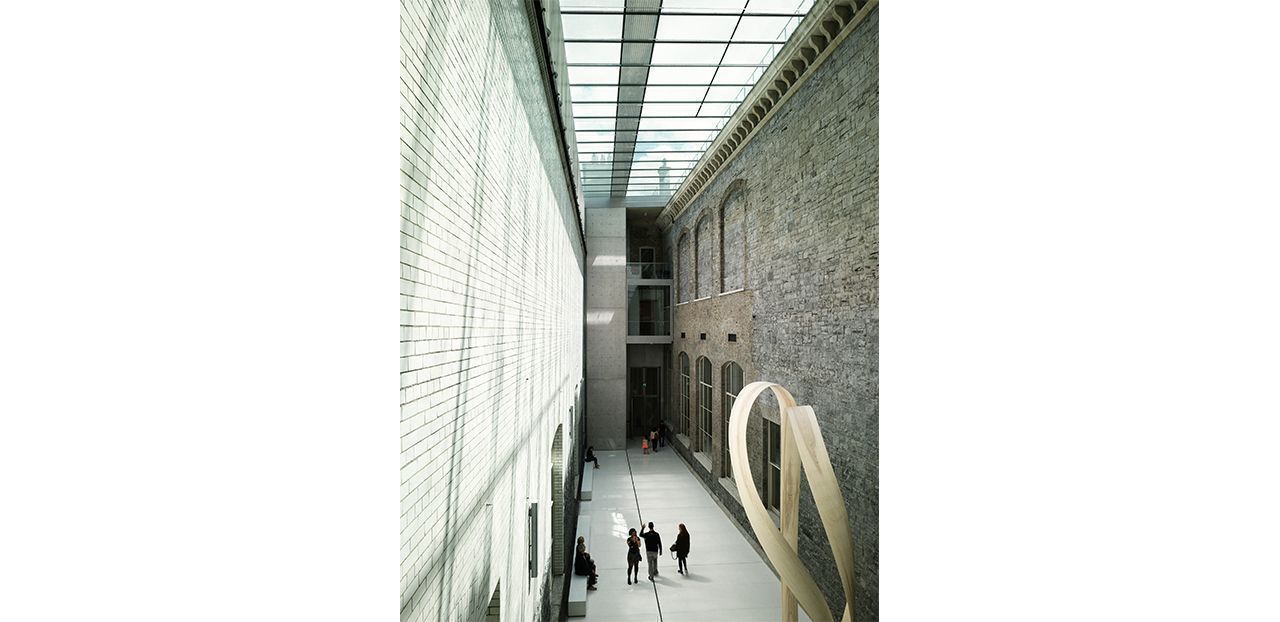 Unique about the natural light conditions in the museum galleries is the fact that they always reflect the weather conditions outside in Dublin. Daylight is controlled yet its changes and variabilities remain visible. This has been made possible by calculating the lux levels cumulatively over the course of a year rather than retaining absolute values on the walls over time. In the Milltown Wing and Dargan Wing this is achieved by incorporating micro-louvres in the double glass units. These small lamellae eliminate direct sunlight and minimise the UV transmittance. Simultaneously the glass coating with a g-value of 0.14 significantly reduces solar gains and heat transfer. To provide the desired diffuse light for the paintings, the wings are featured with bespoke translucent laylight glazing.