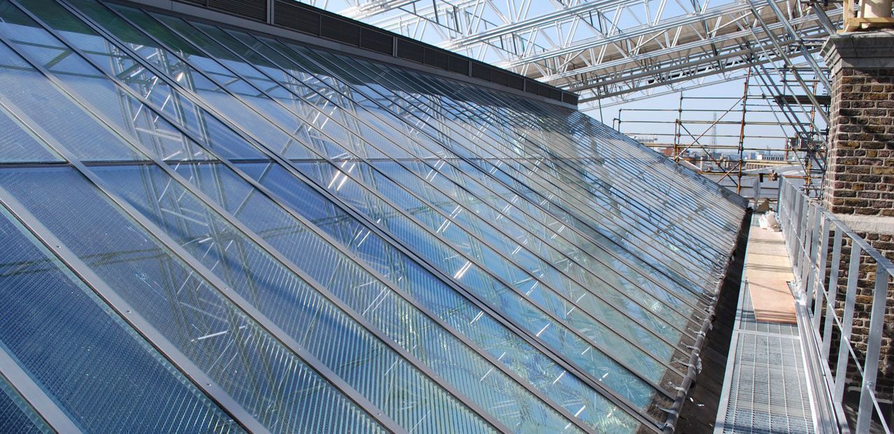 For the Merrion Entrance and the Dargan Wing, the new glass roofs have been realized as an addition to the existing timber roof structure and 19th century ironwork.