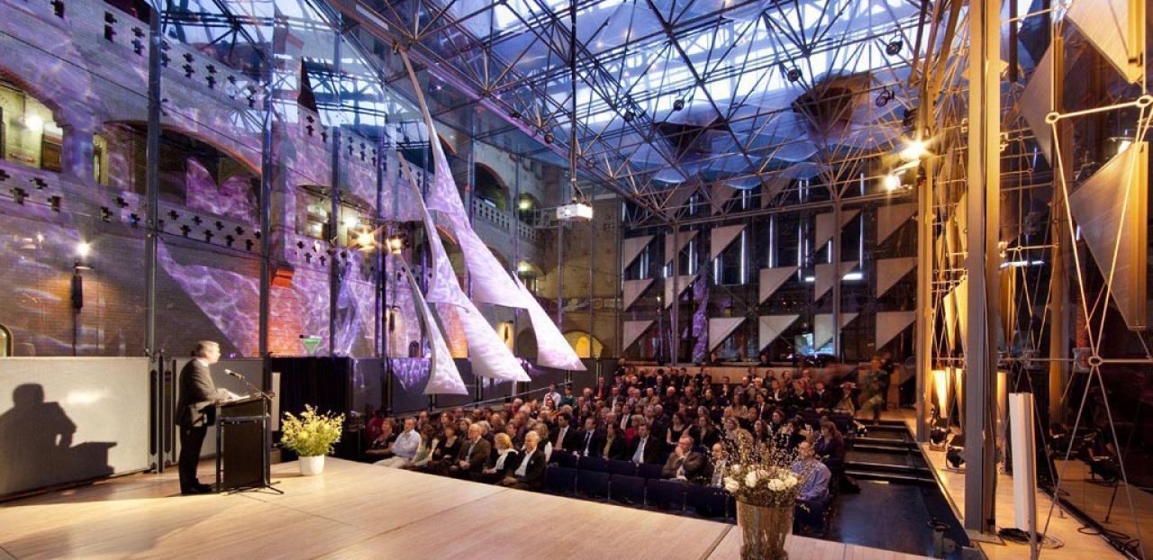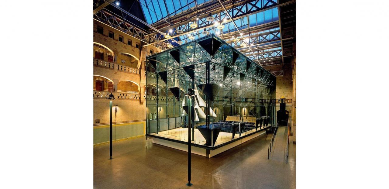 This glass cube is the first large frameless glass construction in The Netherlands. Because it concerns a music hall, the acoustic demands were high. Firstly, the glass interior space has an acoustically isolated function in relation to the surrounding spaces. Secondly, acoustically absorbent panels, acrylic domes and polyester sails guarantee good indoor acoustics.
