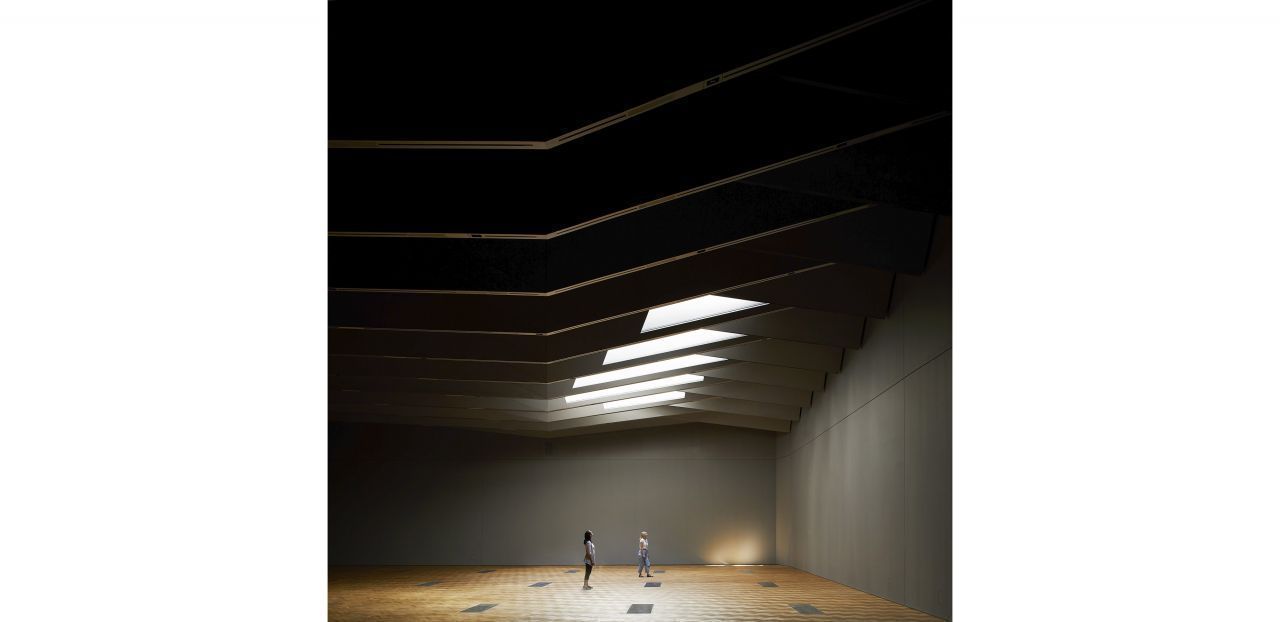The spectacular Oculus skylight, carved out of the courtyard, allows natural light to pass through to the new, 1100 m2 column free, gallery space underneath. AL_A conceptualized the Oculus as though it is an empty museum vitrine. Giving visitors in the courtyard a sneak preview of the new space underneath. The glazed skylight is characterized by a playful scheme of daylight shafts alternated by V-shaped red lacquered closed elements; the so called vitrines. The rhombus shaped glazing, combined with the form of the folded metal underneath the glazing, reveal the steel superstructure carrying the courtyard above, making the invisible visible.