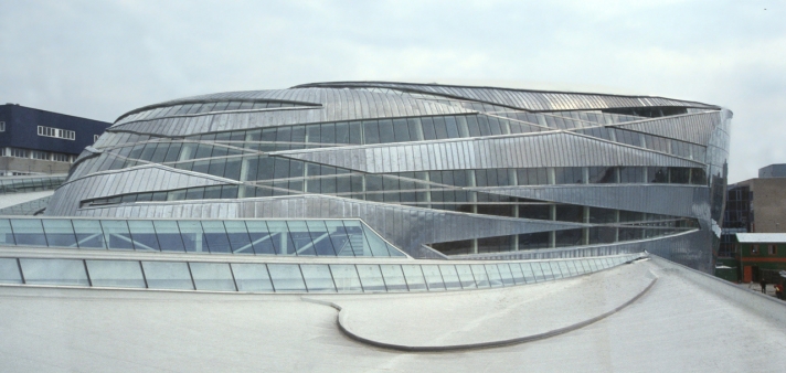 In hot–bending, a single or double curve in a glass panel is normally achieved by heating the glass and allowing it to cool in a mould. This process is particularly expensive given that a separate mould needs to be made for each glass shape. Besides any irregularities in the mould will also be visible in the glass. Octatube has been realizing projects with cold-bent glass since 2001. Flat glass sheets are bent and kept in that shape using mechanical pressure at the construction site. Both in single and double curved applications. Cold-bending of framed glass has been used for some time in cylindrical roofs, but it is also possible to cold-bent glass with point fixings. This technique was used by Octatube on the Floriade Paviljoen. During bending, half of the tension applied was used for bending and the other half to take up the wind loading. It is also possible to twist double gazed panels in a frame. For the twisted “spaghetti facade” of the City Hall of Alphen aan den Rijn Octatube used one quarter of the applied tension for cold twisting.