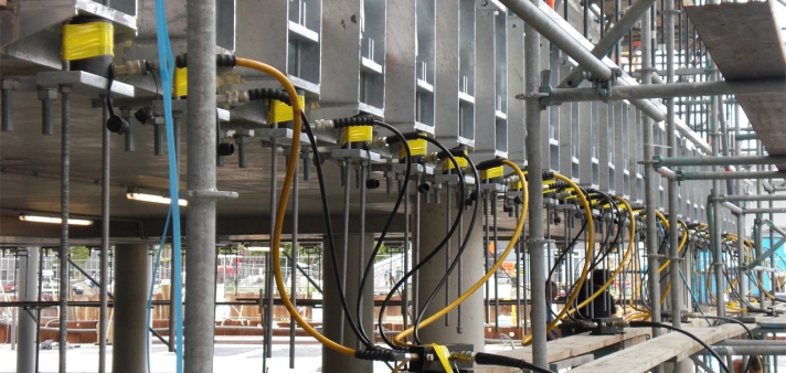 The Market Hall in Rotterdam has the largest cablenet facades in Europe. Following the spectacular design of MVRDV and RHDHV the cablenet facades have dimensions of 34 meters by 42 meters on both sides. The glass facade is divided in 26 vertical and 22 horizontal cables. Together they form a suspended net, similar to a tennis racket. Laminated single glass units are fixed to the cables.
