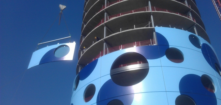 In 2013 the Fletcher Hotel in Amsterdam has been completed, where a cylindrically curved façade of 2850 m² bent GRP panels has been developed and realized.