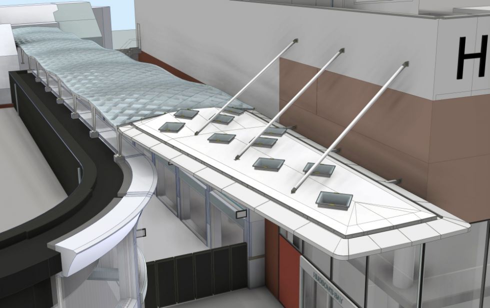 De overkapping is ontworpen door Rijnboutt, dat als architectenbureau ook verantwoordelijk is voor de transformatie van het voormalige V&D pand. Het hele project zal worden opgeleverd in september van dit jaar en dan vindt tevens de opening plaats van het Hudson’s Bay warenhuis.