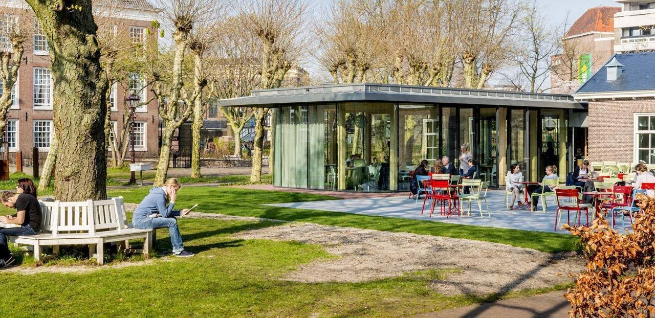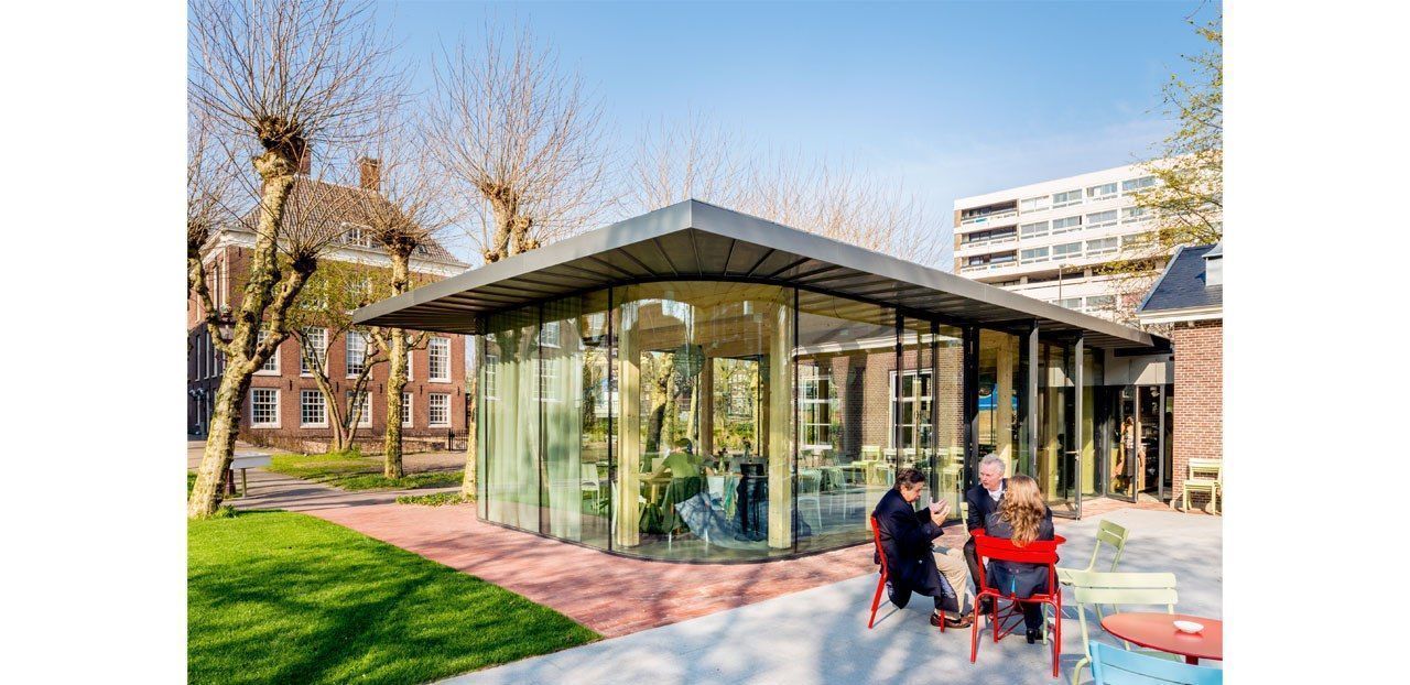 In de Hoftuin naast Museum De Hermitage is in april 2014 een theeschenkerij geopend. Het nieuwe paviljoen heeft een houtconstructie en een volledig glazen gevel die rondom het gebouw loopt. Op de hoeken bevinden zich warmgebogen glaspanelen zodat er van binnenuit onbelemmerd zicht is op de stadstuin, die als het ware doorloopt in het interieur.