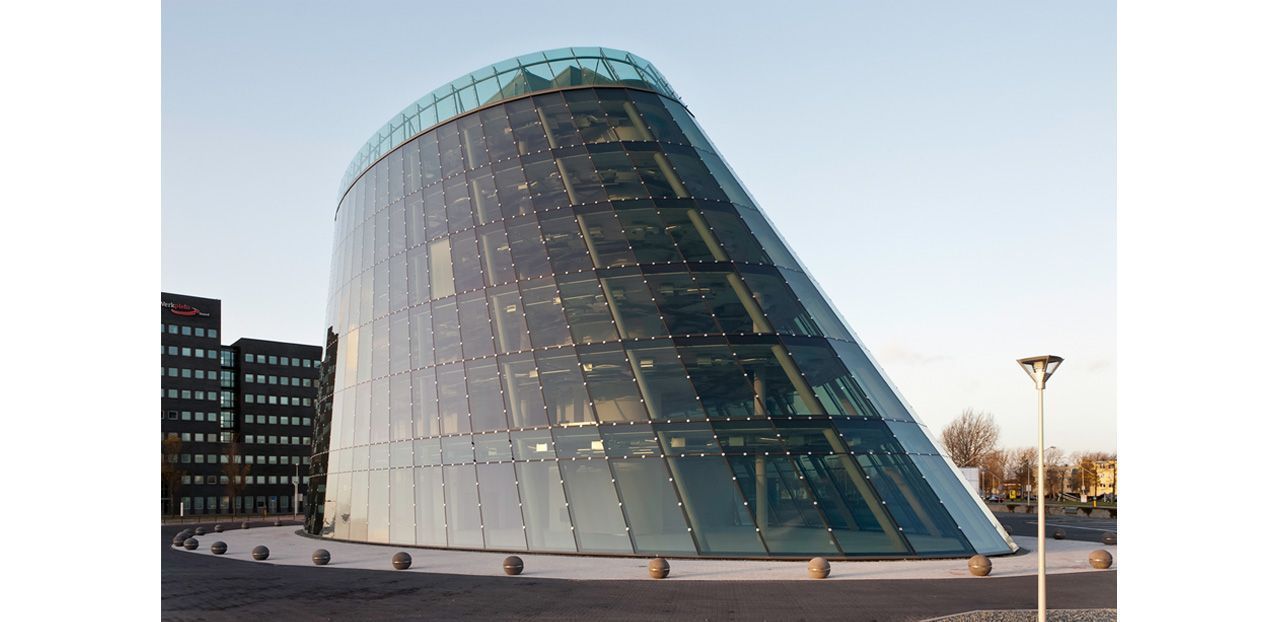 De vorm van het gebouw wordt bepaald door een ellips op de bovenzijde en een asymmetrisch aangelegde ellips op de begane grond, met daartussen de gevelkolommen en gevelpanelen als rechte lijnen tussen boven- en onderellips. Het gevolg van de schuine en conische ellipsvorm van het gebouw resulteerde in een gebouwenvelop die werd opgedeeld in verdiepingshoge glaspanelen. De architect stelde een volledig glazen gevel als antwoord op alle duurzaamheideisen als voorwaarde. Het gevolg waren triple glas panelen met een overspanning (door de schuine stand) tot 5 m lengte. Dat zijn enorme panelen, die dan ook met grootste voorzichtigheid werden gedimensioneerd. Door de geometrie van het gebouw zijn alle glaspanelen in het gebouw uniek in vorm. Het gebouw is symmetrisch in vorm, maar vanwege de panelen met hun coatings op bepaalde zijden geeft de symmetrie dan geen verandering van de regel ‘industrialisation in lots of one’. Een grote uitdaging bij het technisch ontwerp van de gevels was om deze vormcomplexiteit bij de bouwtechnische uitwerking onder controle te krijgen. Enerzijds het BIM model waarmee ook gecommuniceerd werd met de overige bouwpartners; anderzijds de uitwerking van de zeer individualistische glazen panelen en hun detailleringen. Een belangrijke methode die Octatube hiervoor heeft ingezet is het ‘parametrisch engineeren’. Eerst is een principe ontwerp gemaakt, waarbij de onderdelen variëren naargelang de hellingshoek in verticale zin van de aansluiting en de aansluitende glaspanelen in horizontale zin. Hierdoor is het gelukt om de verschillende aansluitdetails efficiënt te ontwerpen als principe en daarna als verschillende uitgewerkte details per oplegging. Ook tijdens de montage is van dit principe geprofiteerd.