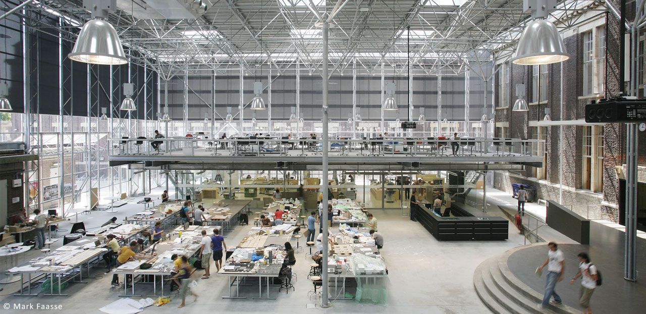 De gevels zijn gebaseerd op kassenbouw en zijn aangepast voor deze hoogte. De ruimtes worden veelvuldig en flexibel gebruikt voor onder andere het bouwen van maquettes, lezingen, studeren en evenementen.