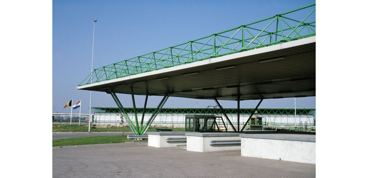 De open constructie benadrukt het karakter van de grenspassage, aldus de architect. De bebouwing is herkenbaar door de steeds terugkerende kleur groen. Octatube realiseerde de staalconstructie voor verschillende grensovergangen, onder meer in Nieuweschans, Oldenzaal en Hazeldonk. De flexibele constructie maakt afbraak en opbouw elders gemakkelijk mogelijk.