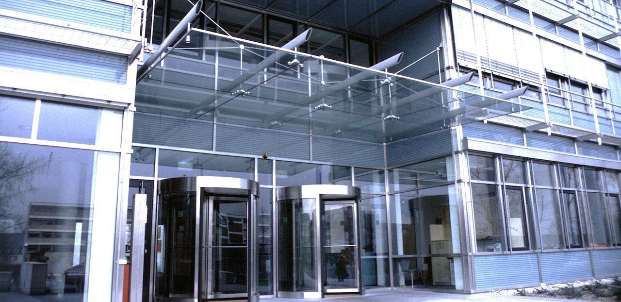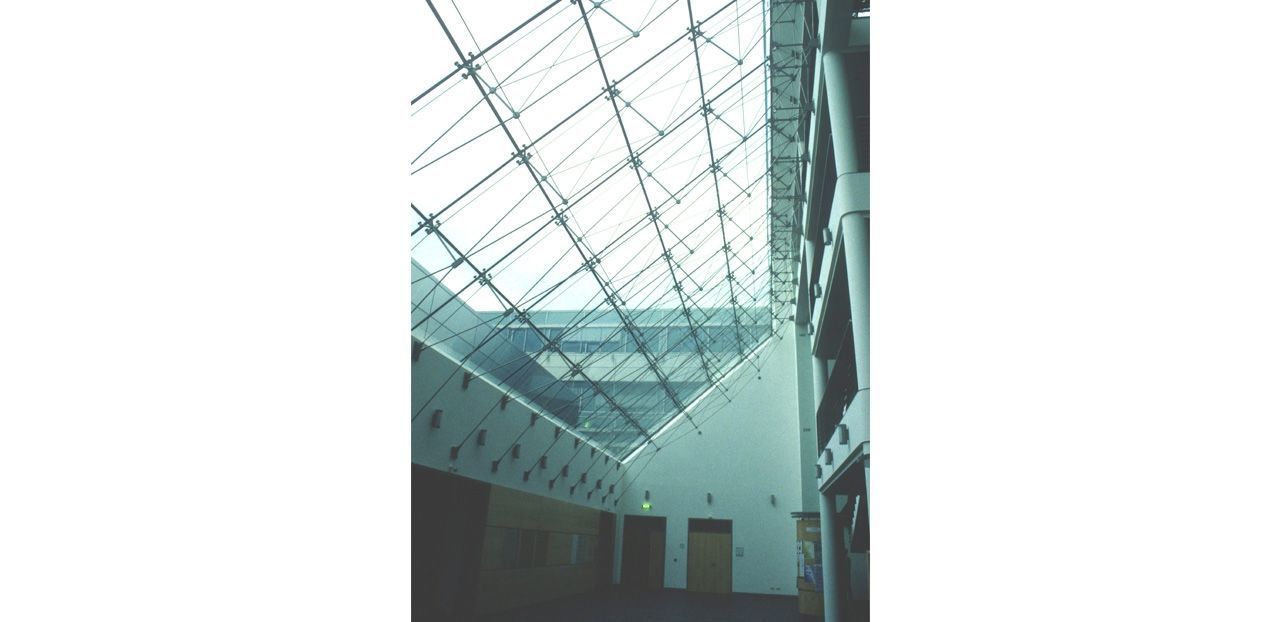 Het atriumdak is opgebouwd  ultra-slanke trekspanten. Hier zijn de isolatiepanelen met lijmverbindingen bevestigd. Bijzonder is dat het hier gaat om de eerste toepassing van gelijmde verbindingen op dubbelglas in Duitsland, door middel van ‘Zulassung im Einzelfall’.