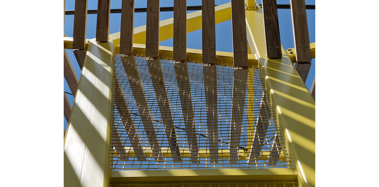 De stalen liggers van het dak zijn met de kolommen verbonden door middel van druk- en trekstangen en trekarmen met dezelfde doorsnede als de liggers. De houten elementen, die door de staalconstructie worden gedragen, hebben geen structurele functie. In de constructie hebben we ook lampen geïntegreerd. Aan de bovenkant van de overkapping komen vogel- en vleermuiskasten.
