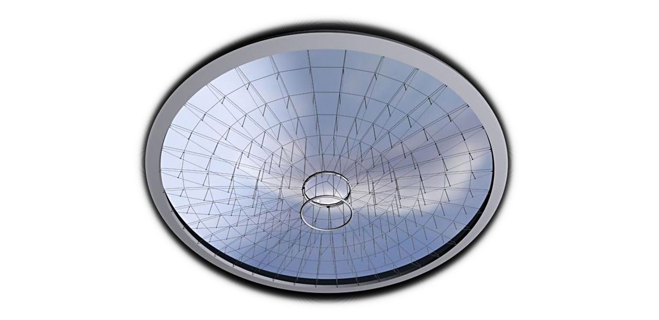 Het glazen dak bestaat verder volledig uit structurele en kozijnloze beglazing, waarbij de roestvrij stalen glasknopen speciaal voor dit project zijn ontwikkeld. Een 3,5 meter brede glazen koepel vormt de kroon op het dak. Deze glazen koepel bevat 9 warmgebogen glaspanelen.