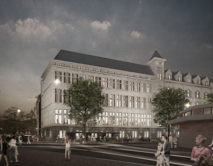 Het ontwerp voor de transformatie van het Kas Bank gebouw tot een modern en luxe hotel, is gemaakt door Office Winhov, in samenwerking met Hoek Architectuur & Restauratie en BK Architecture.
