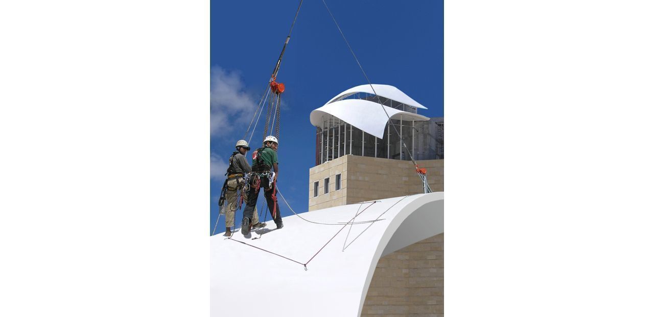Aanvankelijk zijn de complexe, vloeiende vormen van de daken van het Rabin Center geanalyseerd door Arup New York. Zij hebben een gelast en grillig raamwerk voorgesteld van open stalen profielen, met hierop een laag beton. Verder liet het bestek de bekleding van het dak over aan de (onder)aannemer. Bovendien kwam van de architect het verzoek het gehele dak naadloos te bedekken.