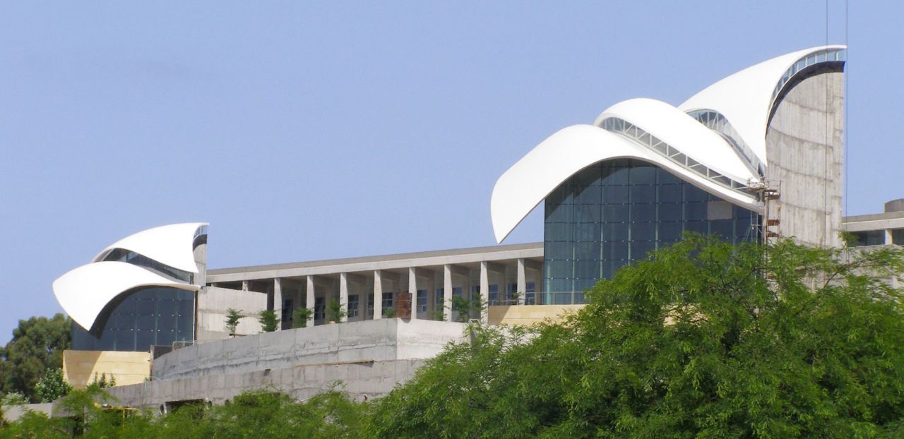Het gebouw is tijdens de aanbestedingsprocedure opgeknipt in verschillende onderdelen. Deze specifieke aanbesteding betrof twee gebouwdelen: de grote zaal en de bibliotheek. Deze hebben beide grote glazen gevels gericht op het zuiden in de richting van de lager gelegen Ayalon vallei. Daarnaast bestond het ontwerp voor beide ruimtes uit zeer opmerkelijke plastic daken in de vorm van twee duiven, als eerbetoon aan Rabin.