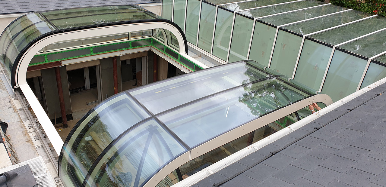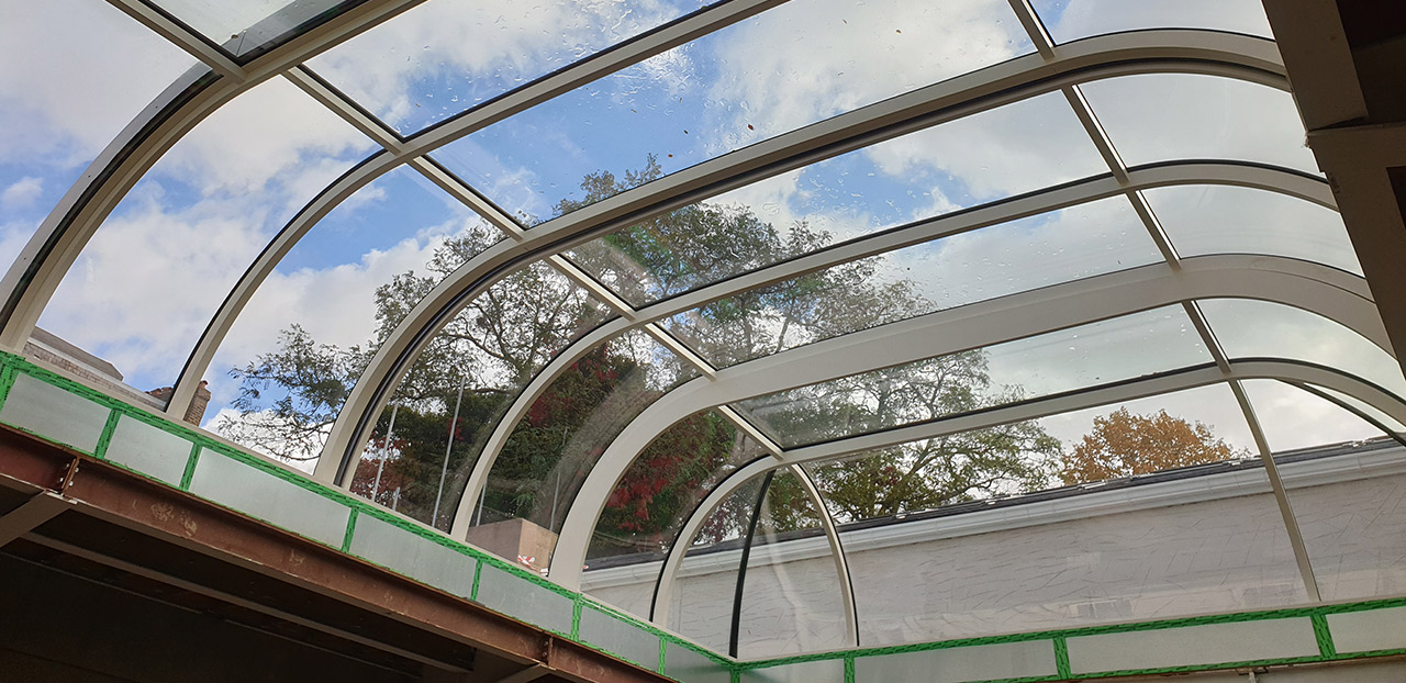 Innovatief aan dit dak is dat de warm gebogen IGU glaselementen met de staalconstructie zijn verbonden met een 2-componenten structurele siliconenkit, zonder andere mechanische bevestigingen. Hiervoor is een dun stukje roestvast staal op de staalconstructie aangebracht, omdat kit niet kan hechten aan het goed gecoate staal.