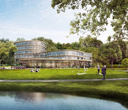 Het gebouw is door RAU architecten zo ontworpen dat het gebouw en de omringende natuur een harmonieus geheel vormen. Het gebouw vormt een inspirerende omgeving voor de medewerkers en bezoekers van het gebouw en landgoed. Overal bieden de transparante gevels de medewerkers en bezoekers een comfortabele plek en zicht op het landgoed rondom.