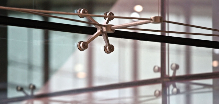 De Quattro knopen zijn de intermediair tussen enerzijds de glasplaat en anderzijds de stabiliserende achterconstructie. In het algemeen hebben ze een vorm die is afgeleid van de kortste afstand tussen de gaten in de glasplaat en de centrale oplegging van de stabiliserende achterconstructie, die gewoonlijk in de as tussen twee glaspanelen loopt. Voor vier gaten in de hoeken van vier glaspanelen resulteert dat in een typische diagonale kruisvorm: de Quattroknoop genoemd.