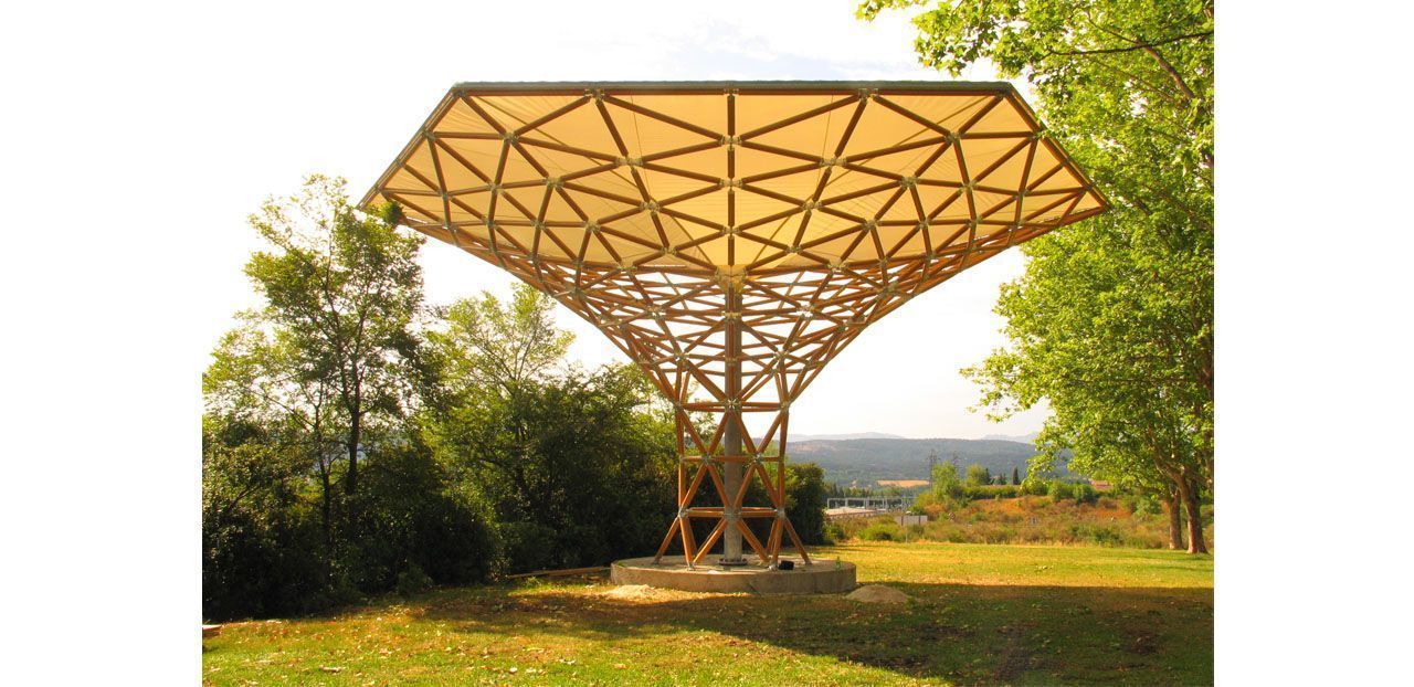 Over de constructie is een membraan gespannen die de bezoekers beschermt tegen de regen of de zon, terwijl zij kunnen genieten van het uitzicht. De constructie is geheel demontabel en heeft vier maanden gestaan in Aix-en-Provence in 2006. Het membraan heeft ook dienst gedaan als paraplu tegen vochtaanslag op de kartonnen buizen die in een vernis waren gedompeld.
