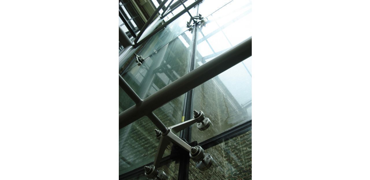 Het 9,5 meter hoge atrium, dat in feite ook als nieuwe entree voor het museum fungeert, heeft een glazen dak van 6 bij 9 meter. De hoofddraagconstructie staat vrij van de omliggende gebouwen, waardoor geen krachten hoeven te worden afgedragen naar de historische bebouwing. De constructie bestaat uit drie portalen die onderling gekoppeld zijn. De liggers van de portalen zijn gewalst om de gewenste vorm te krijgen. De glaspanelen zijn bevestigd aan horizontale lensvormige spanten door middel van roestvrij stalen Quattro knopen.