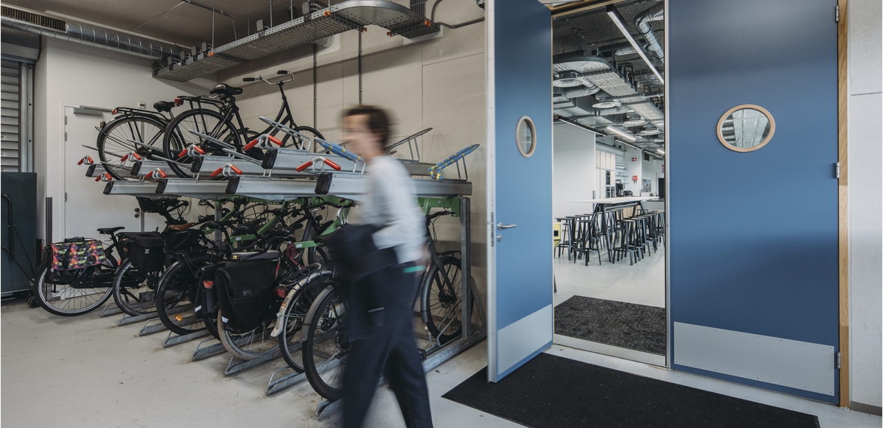 Ons gebouw vormt een open en levendige omgeving die past bij onze bedrijfscultuur. Met een gevel van 7 meter hoge panelen met driedubbel glas en de meest transparante coating zoeken we bewust naar interactie en verbinding met onze omgeving. Je kunt gemakkelijk naar binnen kijken om te zien wat we doen en maken.