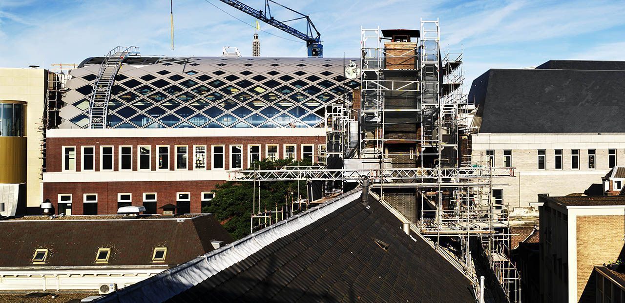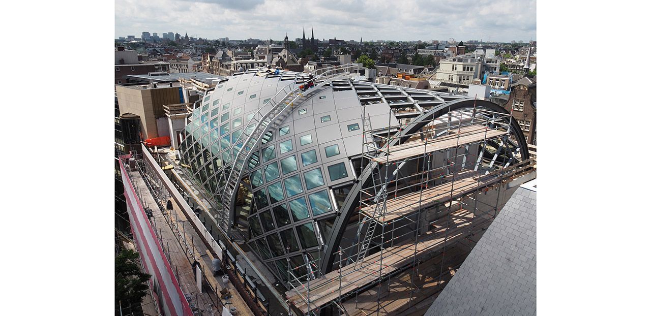 Het opvallende dak is een 80 meter lange gridshell-structuur. Dankzij de halfronde vorm is de dakconstructie in staat haar eigen gewicht te dragen, waardoor er geen ondersteunende kolommen nodig zijn. Dit resulteert in een open en ruimtelijke plattegrond met een vrij uitzicht over het centrum van Amsterdam. De constructie is bekleed met 423 nauwkeurig ontworpen ruitvormige sandwichpanelen, die zowel de esthetiek als de prestaties versterken. De dakconstructie is door alle betrokken partijen tot in detail uitgewerkt in BIM.