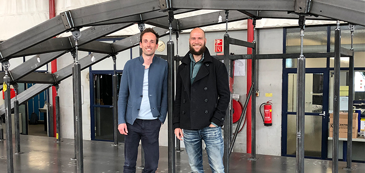Daniel van Kersbergen, engineer bij Octatube: “Alle kokers zijn allemaal file-to-factory gemaakt en liggen klaar op de pallet. Alle aansluitingen zijn gedigitaliseerd. Het instelbare spijkerbed is een nieuw ontworpen onderdeel. Alle complexiteit komt automatisch uit de computer rollen. De hoogte, de positie van het onderdeel en de graden. De geometrie van het model is enorm ingewikkeld, want alles is scheef. Het spijkerbed zorgt er voor dat het complexe model toch in één keer kan worden gemonteerd.”